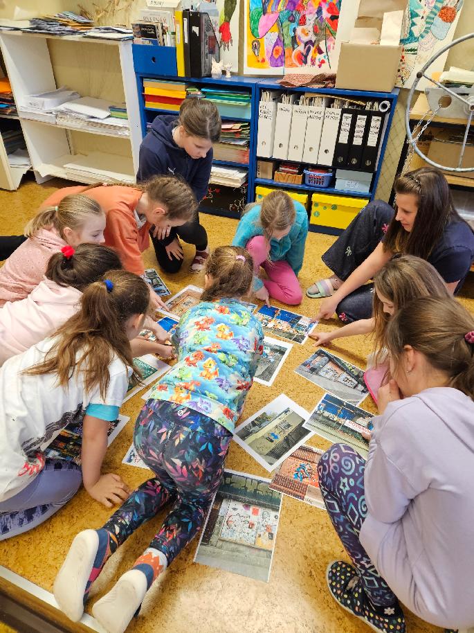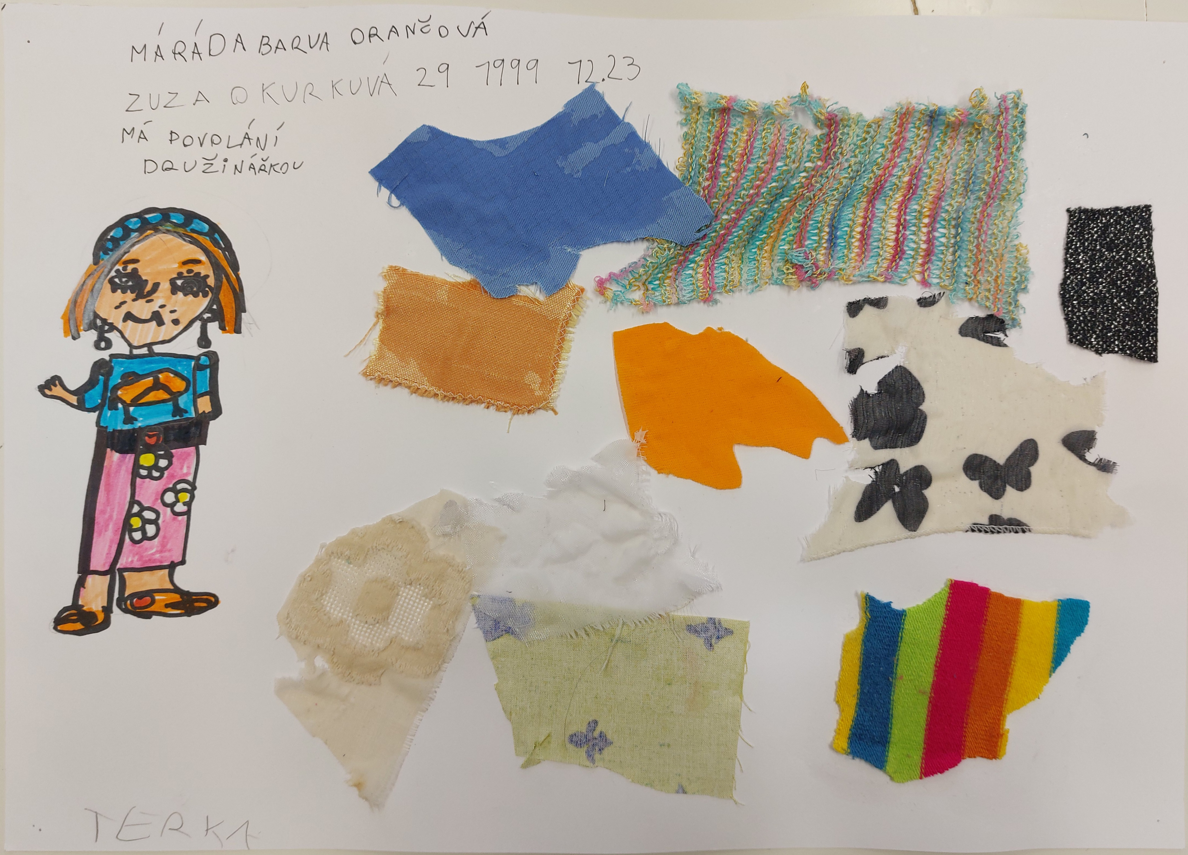 Výtvarná řada začala seznámením se s textilním deníkem Anne Sykes, který svého času vzrušil odbornou veřejnost. Na tento reálný předmět, který zaznamenává život jedné rodiny v látkách použitých na oblékané šaty, jsme navázali vytvořením vlastní postavy, její charakteristiky včetně jejích oblíbených barev. Pak nastalo hledání a vlepování ústřižků látek, do kterých by se postava oblékala. V té chvíli se zrodila diskuse o vzorech na látkách a o tom, jak vznikají. Po teoretickém vysvětlení zrodu… více