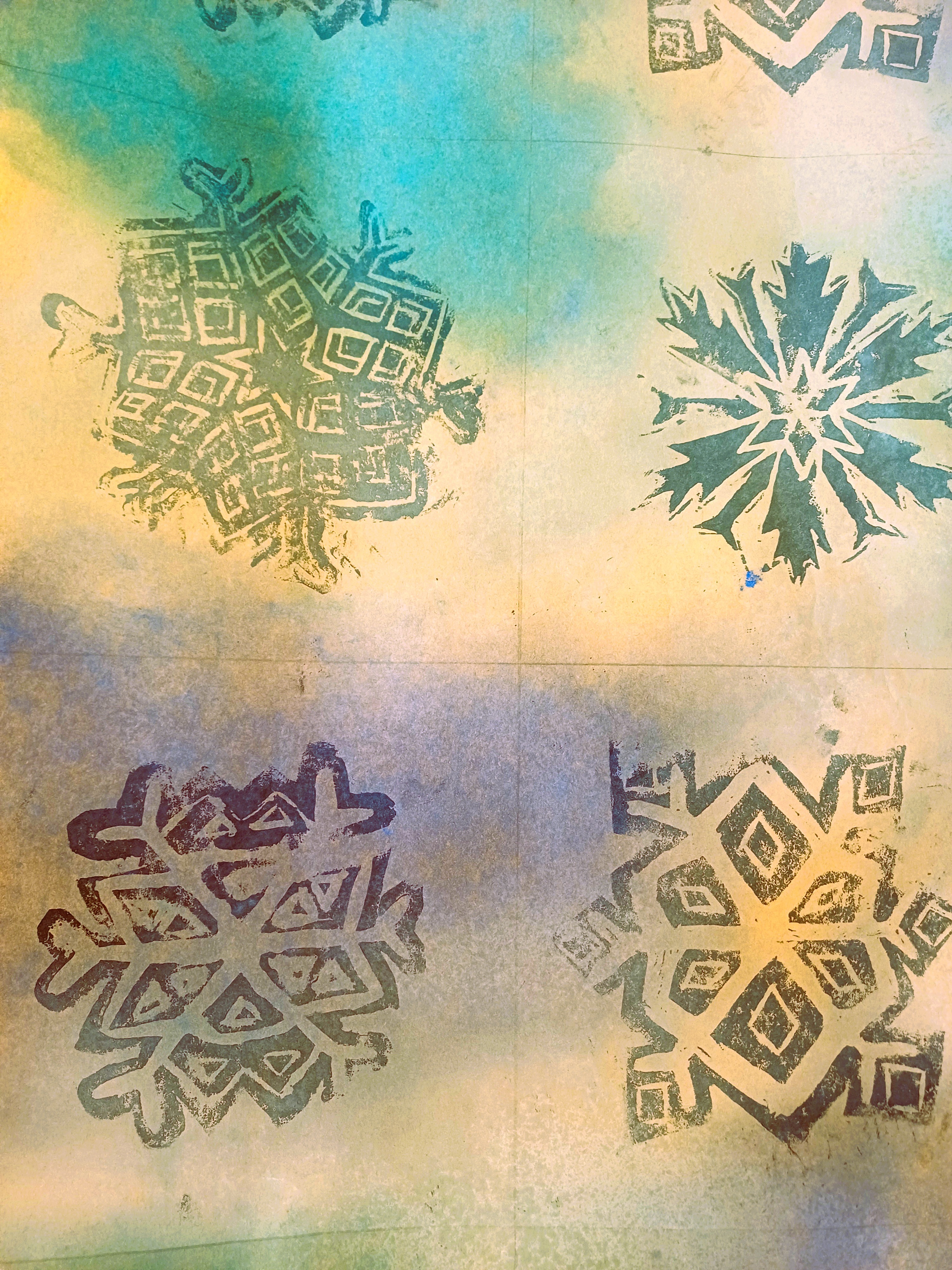 Děti měly navrhnout originální balicí papír, technika linoryt