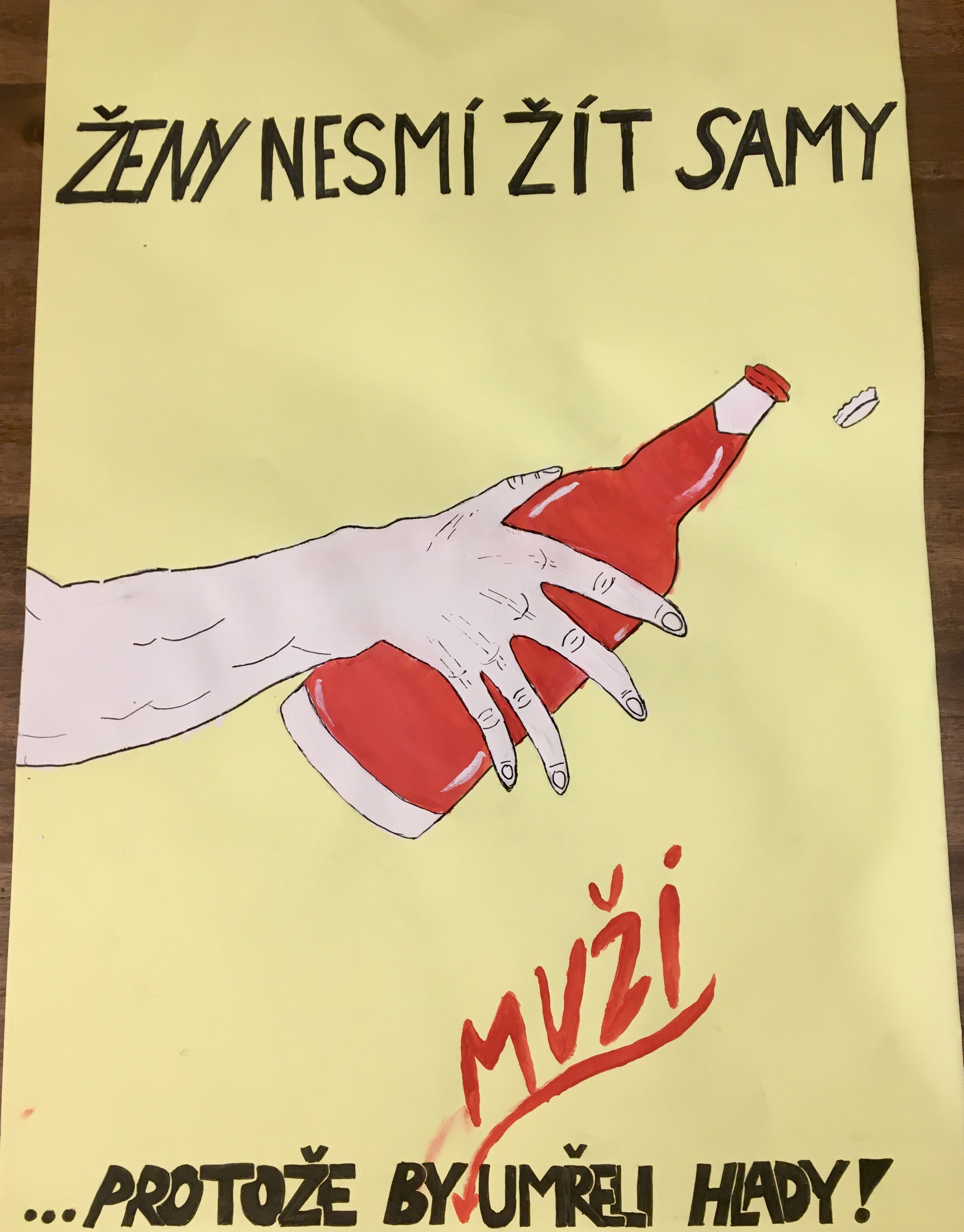 Jedná se o grafický design s konceptuálním přesahem, malované a kreslené plakáty jsou určené ideálně do veřejného prostoru, pokud se nám v budoucnu podaří najít sponzora pro velkoformátový scan a tisk. Téma vyplynulo z anonymního průzkumu tendencí, které považuje tato skupina žaček za ohrožující pro lidskou společnost a je osobně. Žačky zmiňovaly v různé míře ekologická rizika a další témata, ale pocit, že se jako ženy necítí dostatečně bezpečně a svobodně, formulovaly možná pro někoho překvapivě nějakým způsobem všechny. Hledaly jsme pak konkrétní situace z jejich života, které k tomuto pocitu přispěly, a přiřazovaly k nim hlášky, které vystihují související nebezpečné postoje. Cvičily jsme se v argumentaci, pro každé tvrzení jsme hledaly důkaz, v tomto případě absurdní, abychom jasně poukázaly na nesmyslnost vybraných předsudků. Tato mnohdy skutečně používaná moudra dívky poté ilustrovaly s využitím omezené barevnosti. Písmo konstruovaly na štítky, hledaly vhodnou kompozici a nakonec lepily či přemalovaly nebo překreslily na výsledné plakáty. Projekt jsme si velice užily.