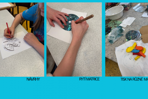 Člověk si designuje svět k obrazu svému, je věta autorek z úvodu knihy Toto není jenom kniha z nakladatelství UMPRUM. Design žijeme. Vnímají žáci tuto skutečnost? Pedagog může plnit důležitou roli v objevování světa designu. My jsme se pustili do práce s písmem. Neřešili jsme čitelnost, pravidla tisku, to je běh na dlouhou trať, ale pouze hru písma v ploše CD, tedy kruhu, plochu jsme využili k hlubotisku. Využití nepotřebného materiálu bylo důležitým podnětem. I zde se nabízelo mnoho možností. Jednak výběr písma, kombinace, velikost, hustota, uspořádání po kruhu, do řádků, volně v ploše,....Sledovali jsme, jak kompozice tisku působí, tiskli jsme na různé materiály, i to ovlivnilo výsledek,....