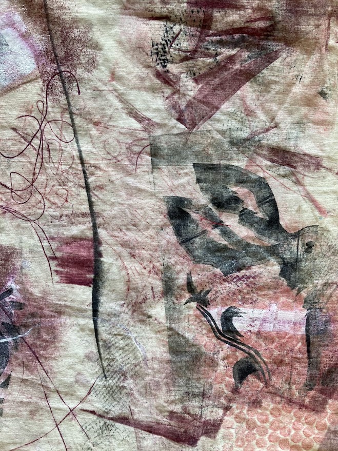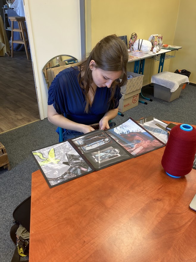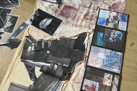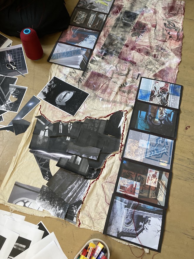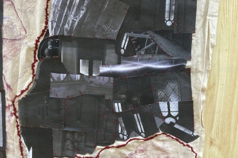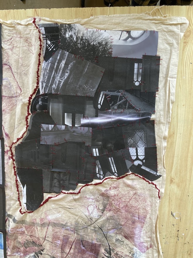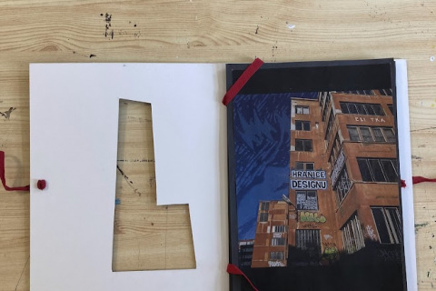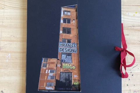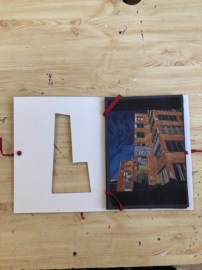 Půlroční projekt propojuje fotografie studentů, rozmanité druhy tisků a práci v grafických programech. Bývalá textilka ožívá jemnými vitrážemi oken i surovým graffiti, dějiny nesoucí kostely se ztrácí a zase objevují v ornamentech, barvách a tvarech, evokujících úlomky historických slohů. Plátno plné divokých tisků protíná červená linie hranic země i města, přišívá vybrané části staveb do naší minulosti, současnosti a snad i budoucnosti.