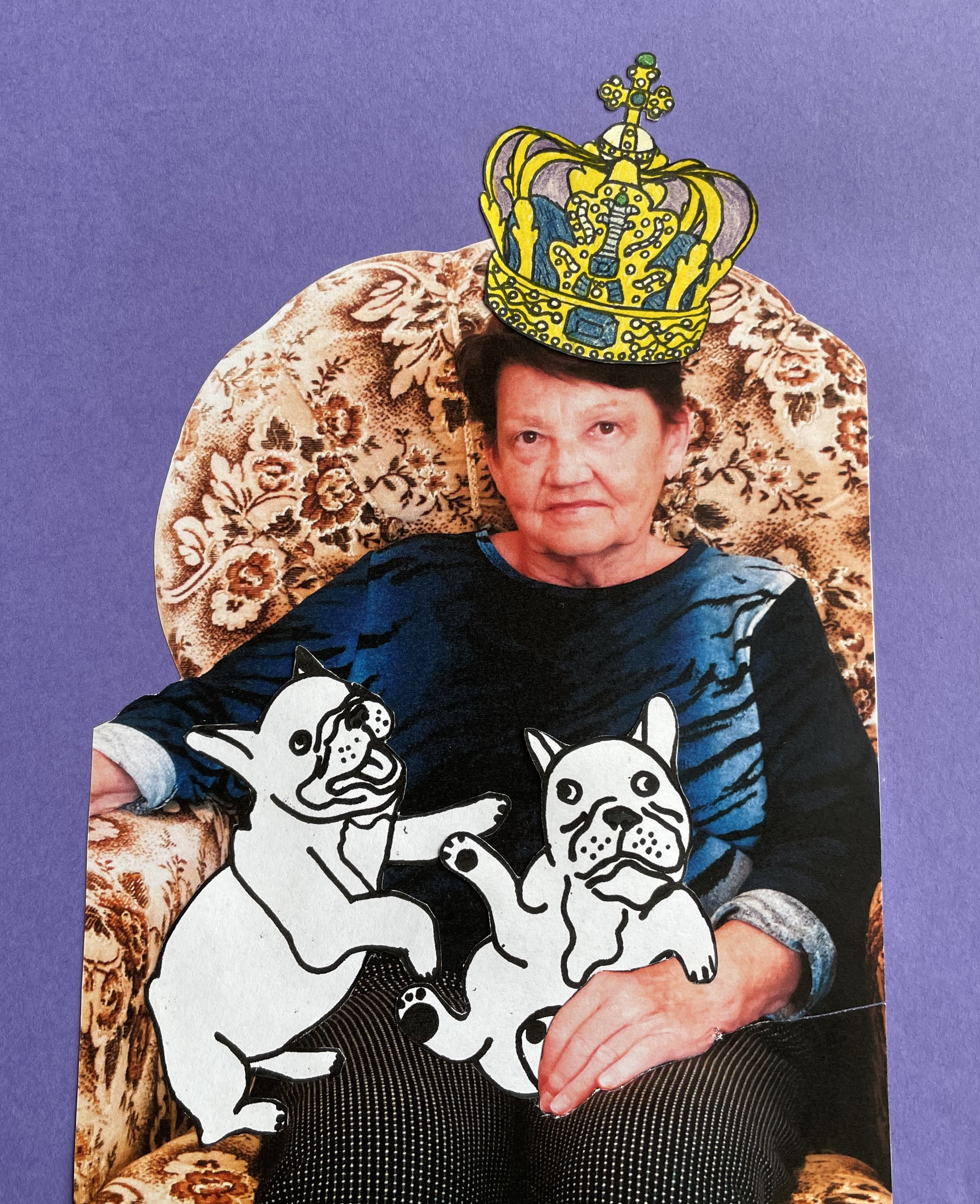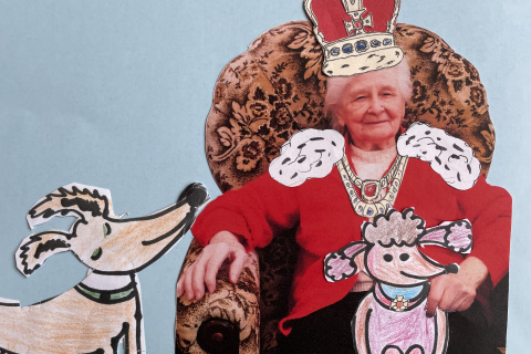 Soubor prací Kytice pro královnu vznikl v rámci spolupráce s Alzheimer Home v Pardubicích Polabinách. Máme rádi květiny, zvířata a anglickou královnu. Po vzoru anglické královny ve vznešené róbě, jež je obklopena psíky, směřujeme tedy naši tvůrčí dílnu tímto směrem. Někdo lepí, někdo stříhá, další vybarvuje. Naši žáci dodávají kresby královských korun, šperků, později podzimních přírodnin, ze kterých si naše dámy komponují květiny.