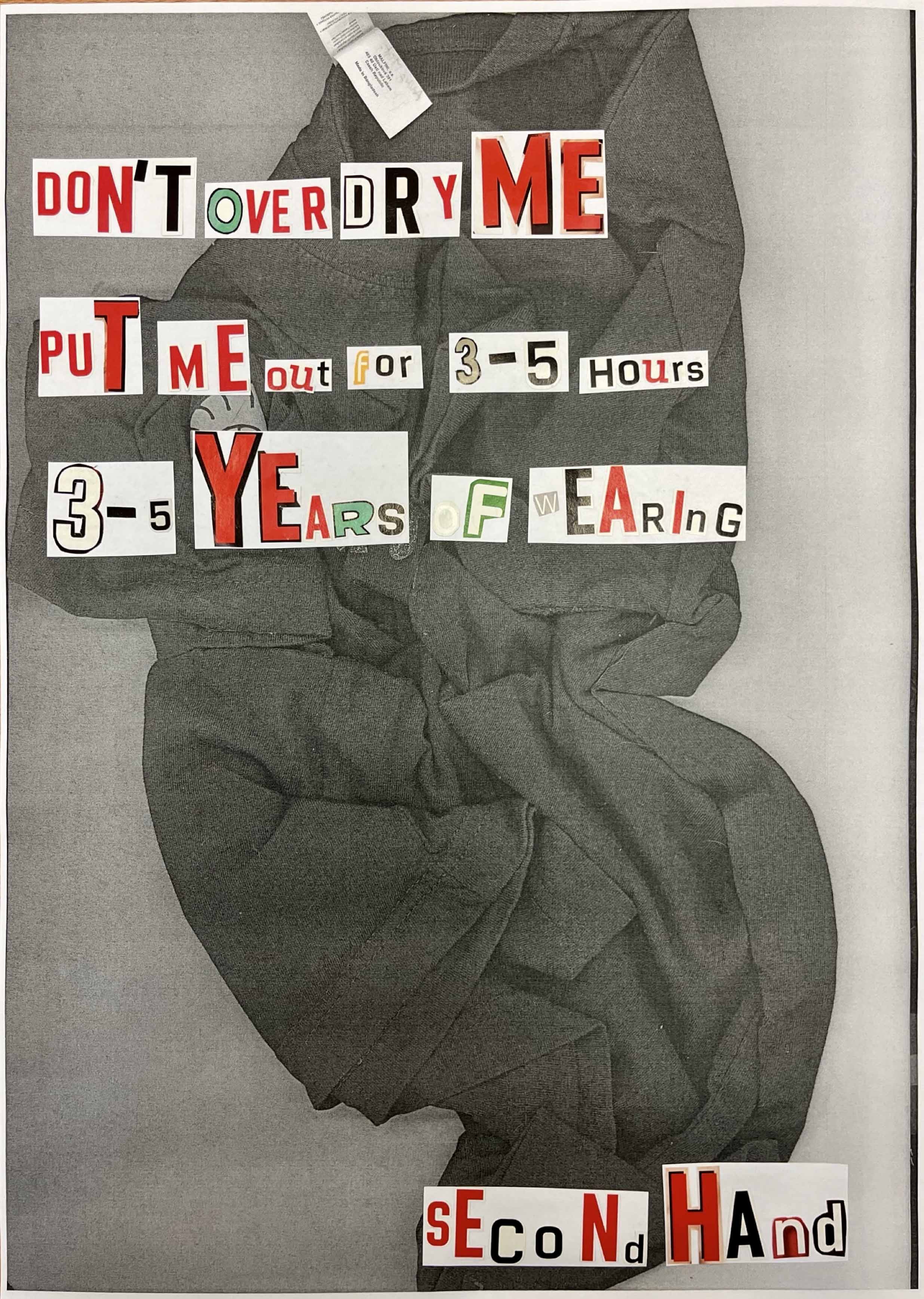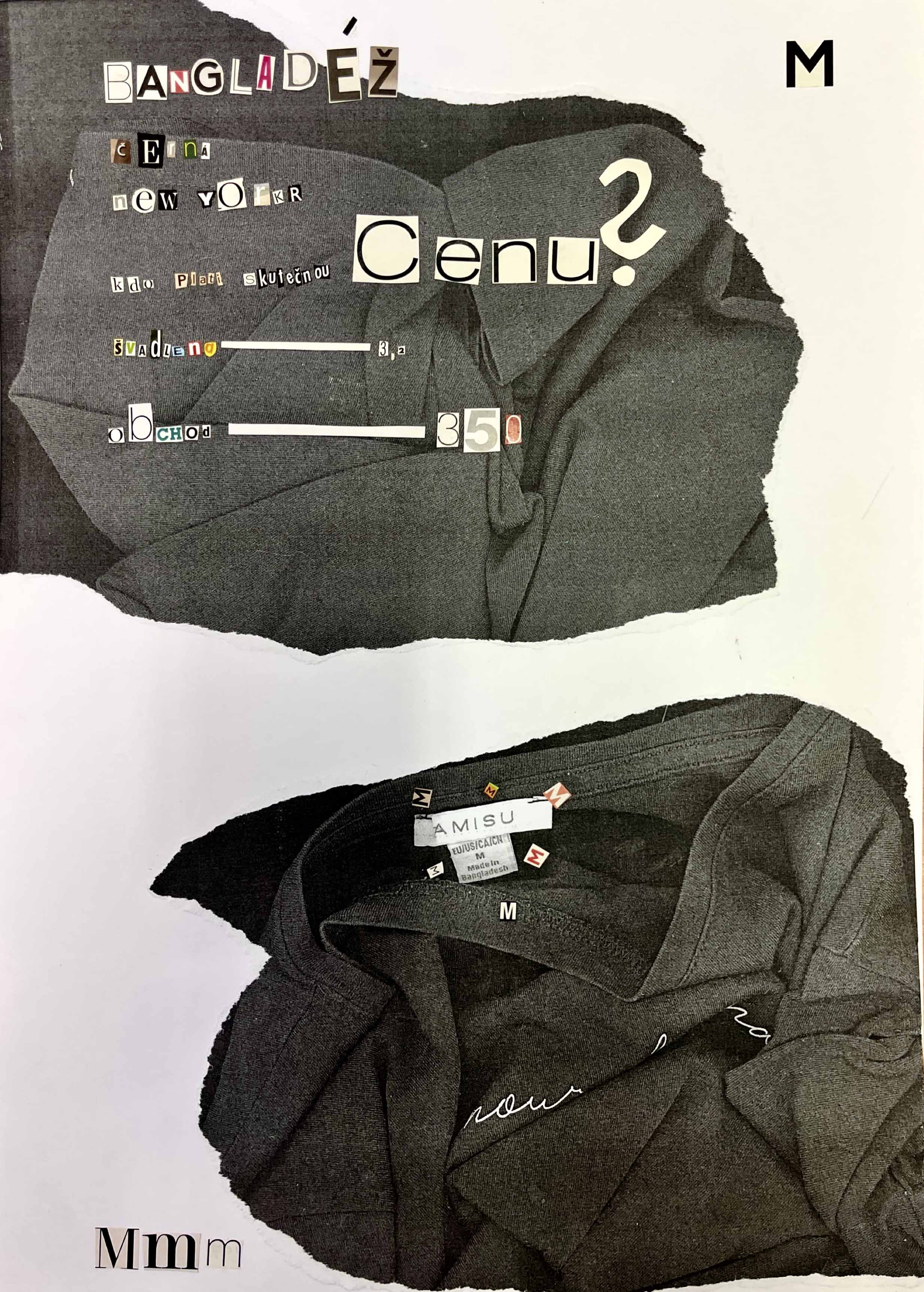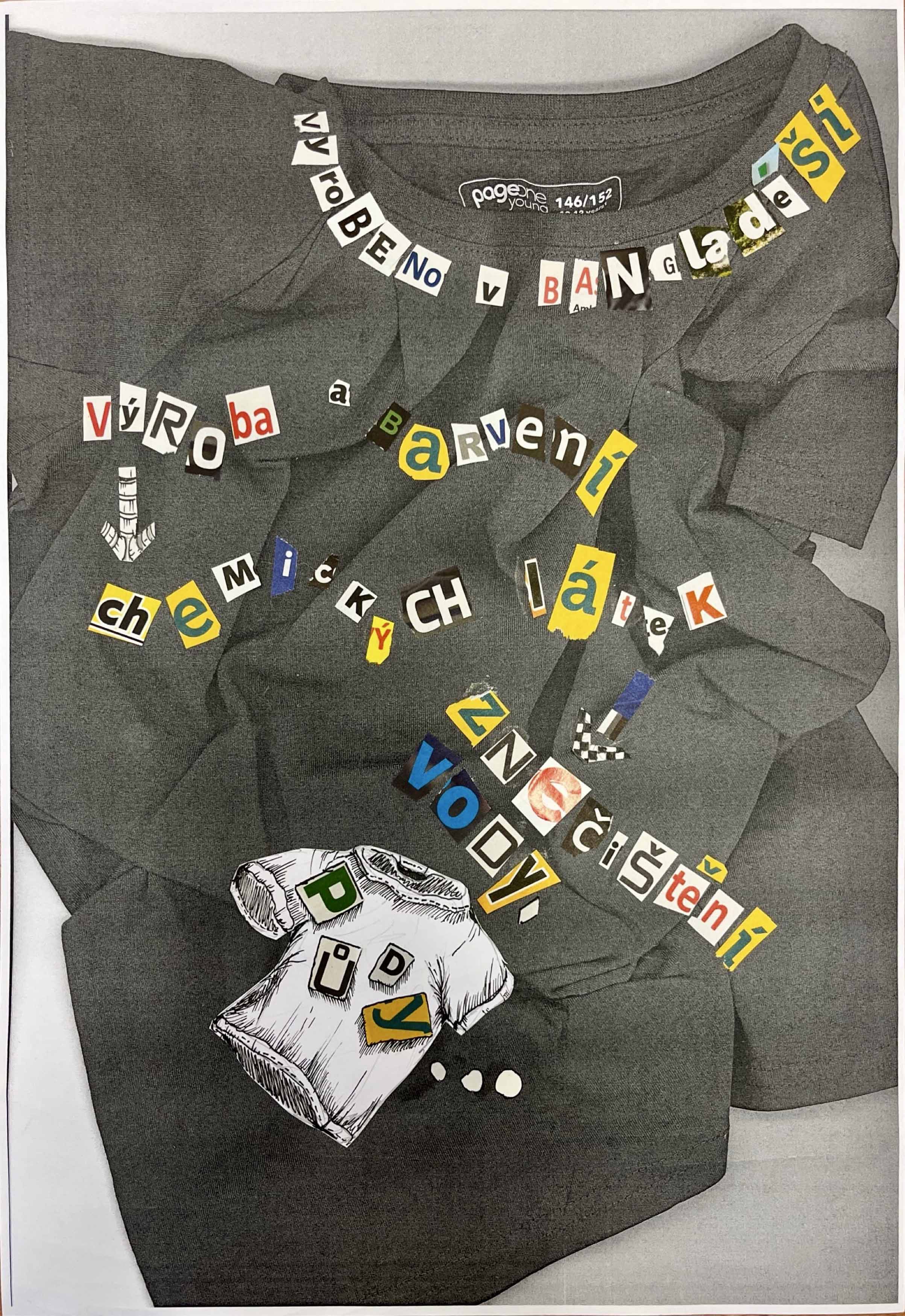 Výsledkem jejich práce se staly plakáty vytvořené technikou koláže. Žačky pracovaly s okopírovaným kusem vlastního oblečení a v duchu principů udržitelnosti využily pro textovou část plakátů nalezená a vystřižená písmena z časopisů a novin.