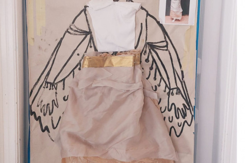 Podle tohoto definitivního návrhu pak vytvářeli kostým z tenkého balícího i kartonového papíru, s použitím drátů, igelitu, látky, dřevěných korálků, alobalu, lepících pásků a tavné postole.