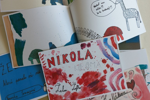 Z postupně vzniklých kreseb, maleb a grafik jsme sestavili jednoduchou knížku. Jednotlivé stránky děti doplnily textem a komiksovými bublinami.