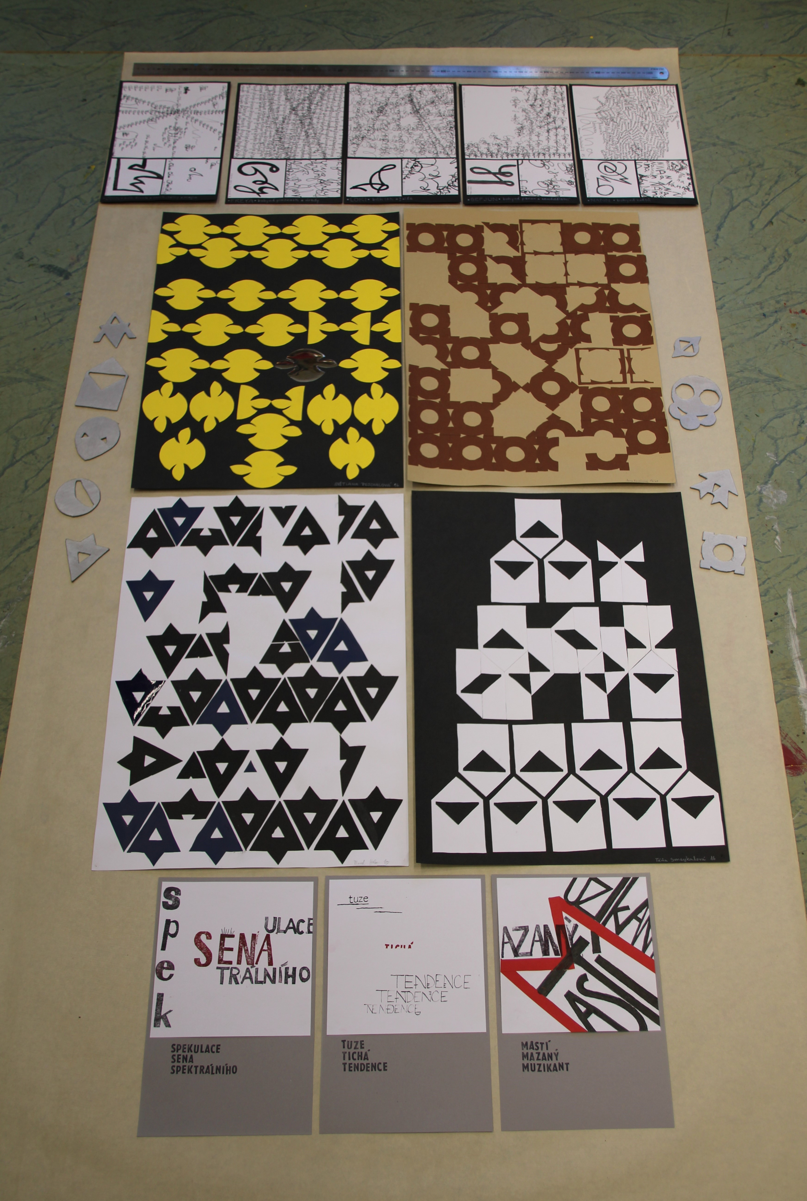 5X kresba/písmo cca A4, 4x koláž A2, 3x písmo, 9x kartonový znak (malý)