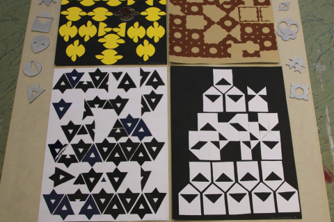 6. Tříštění a obnovení – dělením, množením, odebráním, překlápěním, rytmickým řazením, vychýlením…použít vzniklý znak ve větší ploše.