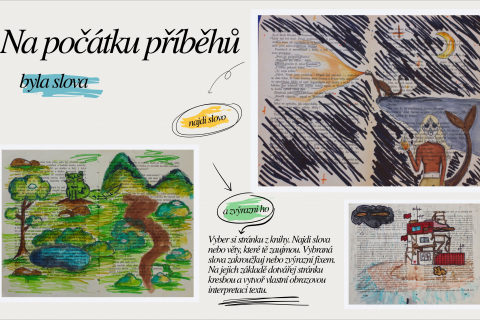 Výchozím bodem byla obyčejná stránka z knihy. Žáci z textu vybírali slova a věty, které je zaujaly, a postupně je proměňovali v obraz. Původní text mizel pod kresbou a koláží a stával se zárodkem nového příběhu.
