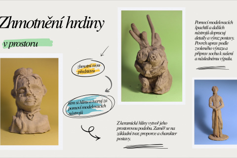 Postupně začal vznikat celý knižní svět. Hlavní postava získala keramickou podobu i masku a své prostředí, které žáci vytvářeli jako malé trojrozměrné dioráma v krabici z různých materiálů.