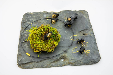 Inspirací pro projekt se stal region Ostravska a Opavska, který poskytuje výrazný kontrast mezi industriálním a přírodním prostředím. Ostrava a její okolí jsou historicky spjaty s těžkým průmyslem, zejména těžbou uhlí a zpracováním kovů. Uhlí jako materiál, ale i symbol těžké průmyslové práce, silně ovlivnil vizuální, kulturní i sociální charakter regionu. Žáci byli vedeni k pozorování, jak průmyslová krajina formuje místní prostředí a identitu. Naopak oblast Polanky nad Odrou a její okolí je chráněnou přírodní lokalitou, bohatou na lesy, vodní toky a biologicky cenné ekosystémy. Zlatý prvek, který doplňuje šperky, pak vytváří vizuální akcent a harmonizuje tuto protikladnou inspiraci do celistvého designového řešení. Projekt tak staví do dialogu dva odlišné světy regionu: těžký průmysl Ostravska a křehkou přírodní krajinu Polanky a Kyjovic, a propojuje je v estetickém i myšlenkovém rámci šperku.