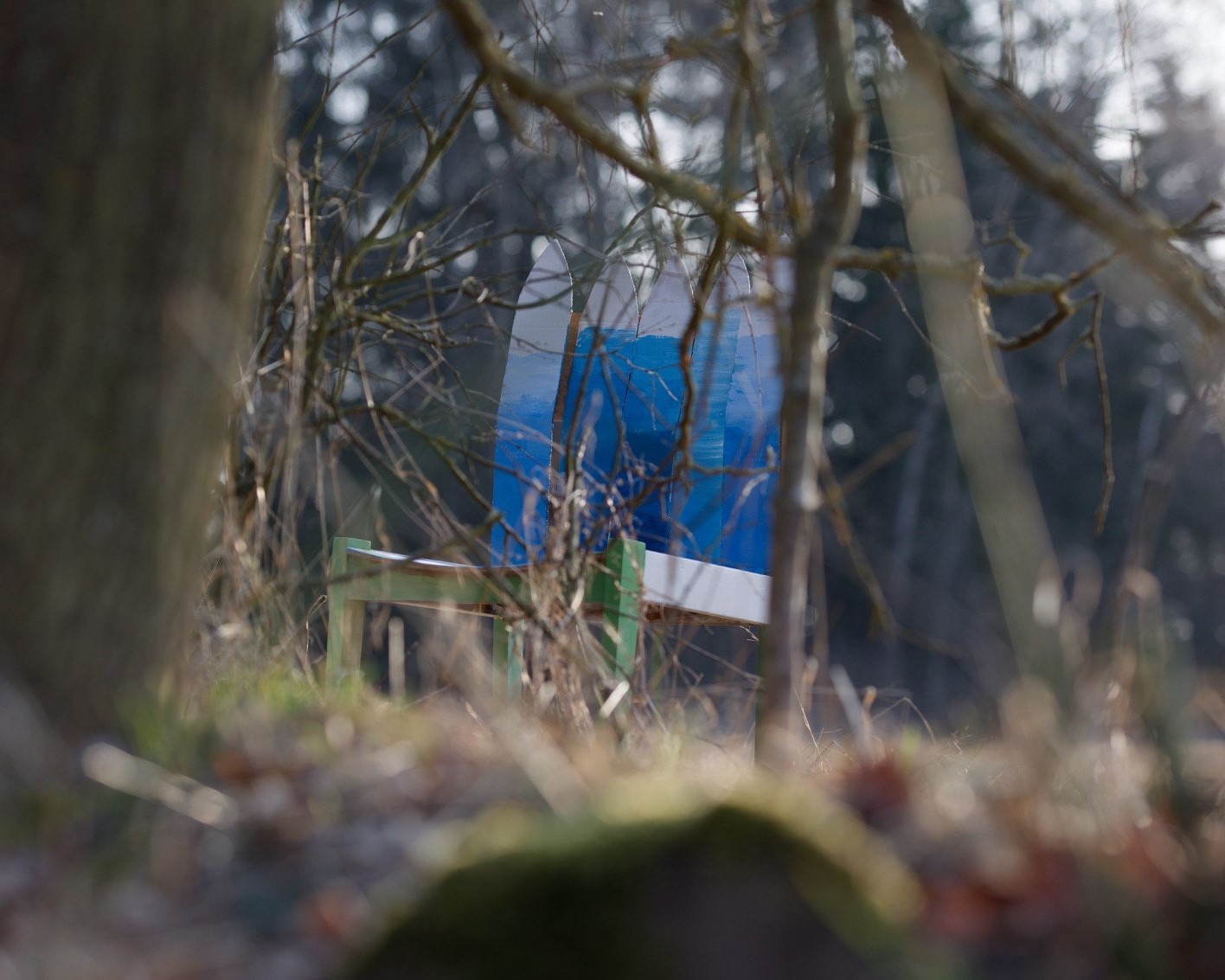 Další fází práce byl výběr svého oblíbeného místa v krajině – v okolí Milína, kam žáci své židle umístili tak, aby podpořili svůj koncept. Následně jsme uskutečnili workshop s fotografem Martinem Andrlem, žáci se seznámili s principy focení objektu v krajině a pokusili se svá díla fotografickou cestou zaznamenat.