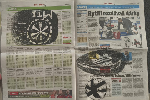 20x grafika malá, 1x noviny (grafiky vtisknuté do novin)