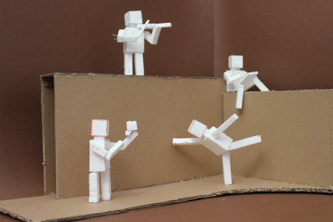 Cesta od prvotní myšlenky k finálnímu projektu kopírovala profesionální designérský proces. Autorka nejprve pracovala na sérii skic, aby definovala jasné charakterové rysy a pohyby jednotlivých postav. Následovala tvorba zmenšených modelů z polystyrenu, které byly následně fotografovány a za pomoci grafických programů a umělé inteligence převedeny do precizních vizualizací v reálném prostředí. Aby bylo možné ověřit měřítko a působení, byla jedna ze soch vytvořena také ve velikosti 1:1. Celý postup vyvrcholil spoluprací s externím konstruktérem, který na základě autorčiných podkladů vypracoval technickou dokumentaci pro výrobu z plechu. V současné době je projekt kompletně připraven k realizaci a škola hledá cesty k jeho finálnímu zhmotnění. Ideální příležitost vidíme v navázání partnerství se střední či vyšší odbornou školou se zaměřením na strojírenství a kovovýrobu.