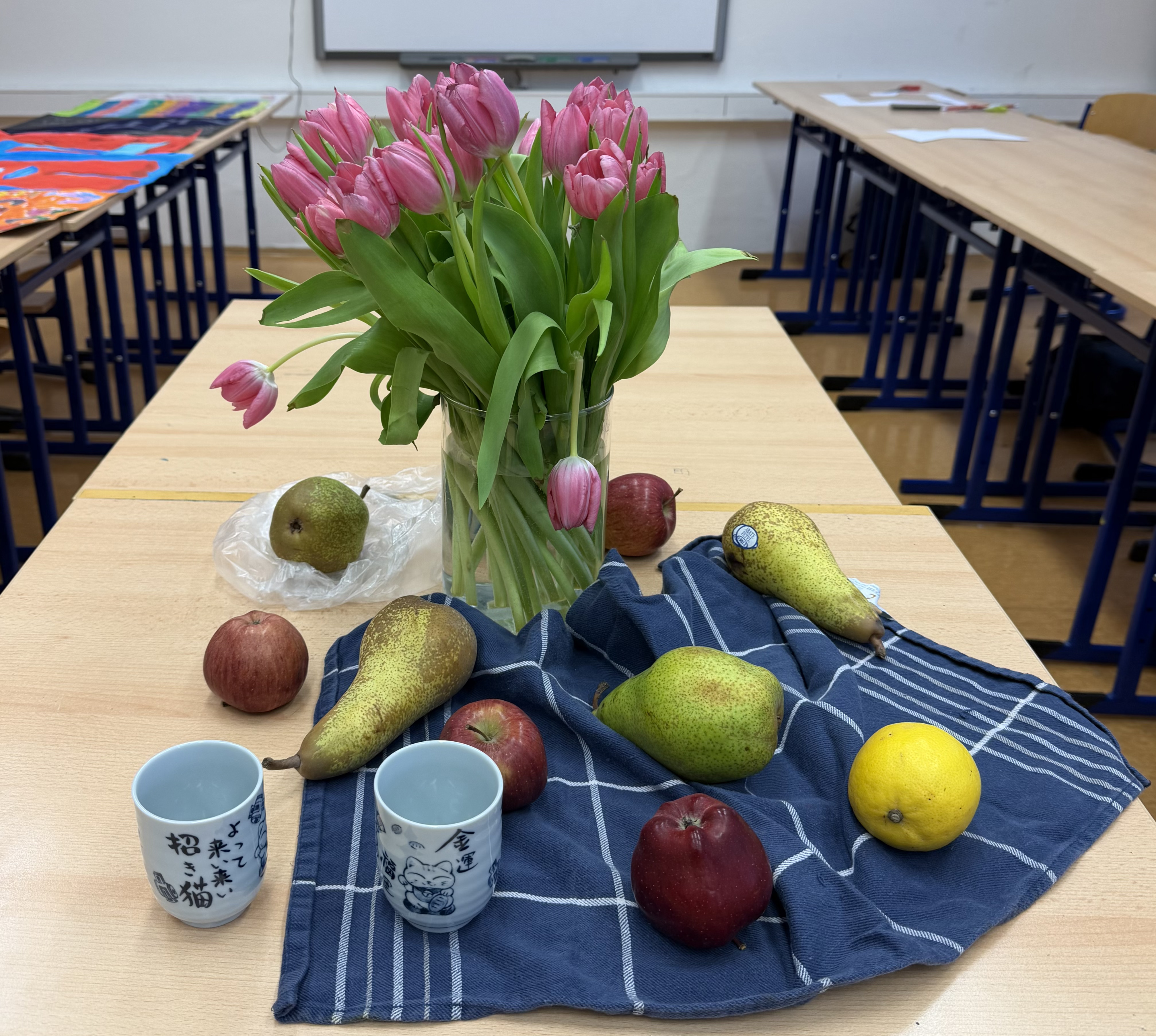Během hodin výtvarné výchovy jsme pozorovali proces pomíjivosti na příkladu zátiší s živou lilií a hledali zobrazení jejího symbolu v dějinách umění. Vycházeli jsme z přednášky o zlatém věku malířství 17. století, představujícím vrchol baroka s dominujícím realismem, a hledali paralely se současným uměním, například při zachycení světla a momentů každodennosti. Důležitá byla i návštěva NGP a uvědomění si tvůrčího procesu, který vedle fyzického popisu díla přibližuje především jeho účinek na diváka, vytvoření vztahu a zprostředkování otázek současného umění. Zároveň můžeme připomenout založení školní galerie GYMVOD GALLERY s fotografickou výstavou dokumentující pobyt studenta v USA. Dalším projektem bylo vymalování stěny před školní jídelnou, kde studenti představili dílo Henriho Matisse a zhodnotili jej v navazující seminární práci myšlenkovou mapou, výzkumnou otázkou a popisem reakcí vrstevníků na vznik nového díla ve veřejném prostoru školy.