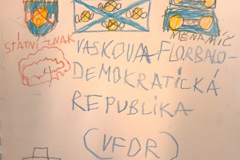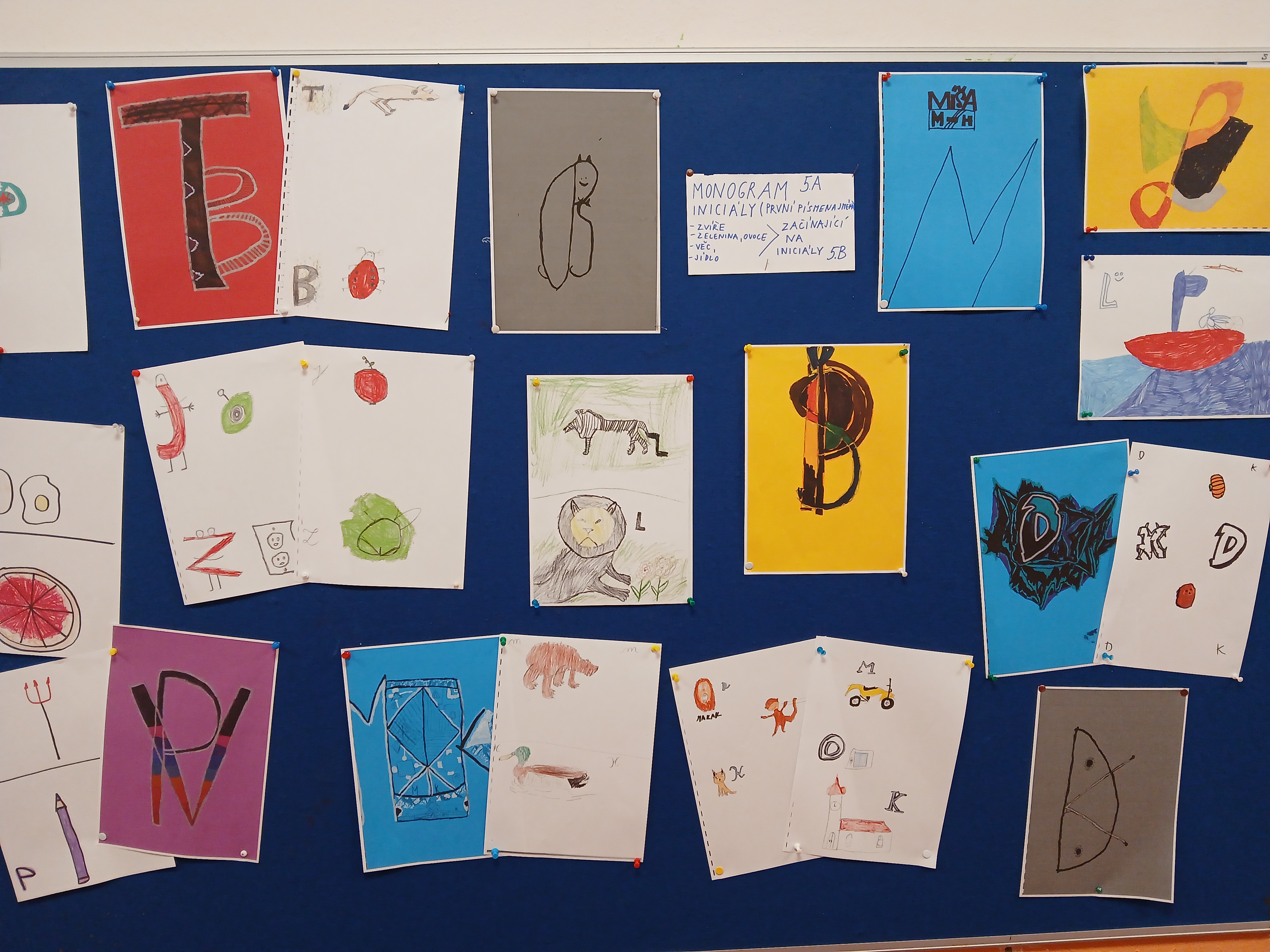 Půlroční projekt s dětmi 5 tříd. Každý si vytvořil sešit s monogramem, děti pak měli zkoumat své iniciály-nacházeli předměty,zvířata a další od začátečních písmen svého jména. V dalších hodinách dělali návrhy na svůj vysněný dům, svůj fiktivní stát a jeho vlajku, znak a měnu. (Mince pak i odlili do sádry a pozlatily sprayem.)Dále vymýšleli piktogram k olympijskému sportu, loutku svého hrdiny