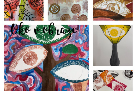 Oči jsou vstupem do těla a duše člověka. Co vidíme reálně a co ve svých snech. Začali jsme velkým formátem oka v suché křídě a rozvinuli jsme principy realistické malby a kresby krajiny, ve které žiji a vidím každý den. Formuje mě, ovlivňuje, ale když zavřu oči a usnu, jsem úplně někde jinde. Přes příběh a biografické dílo Toyen, jsme se ocitli v surrealismu a imaginativní tvorbě. Pracovali jsme na obrazech inspirovaných Toyen, na přetváření, na detailech na ztvárnění objektů, reliéfů a hlavním výstupem má být snový polštář, kde žáci zúročí celoroční tvorbu. Je to asambláž materiálů, myšlenek a autorské tvorby.