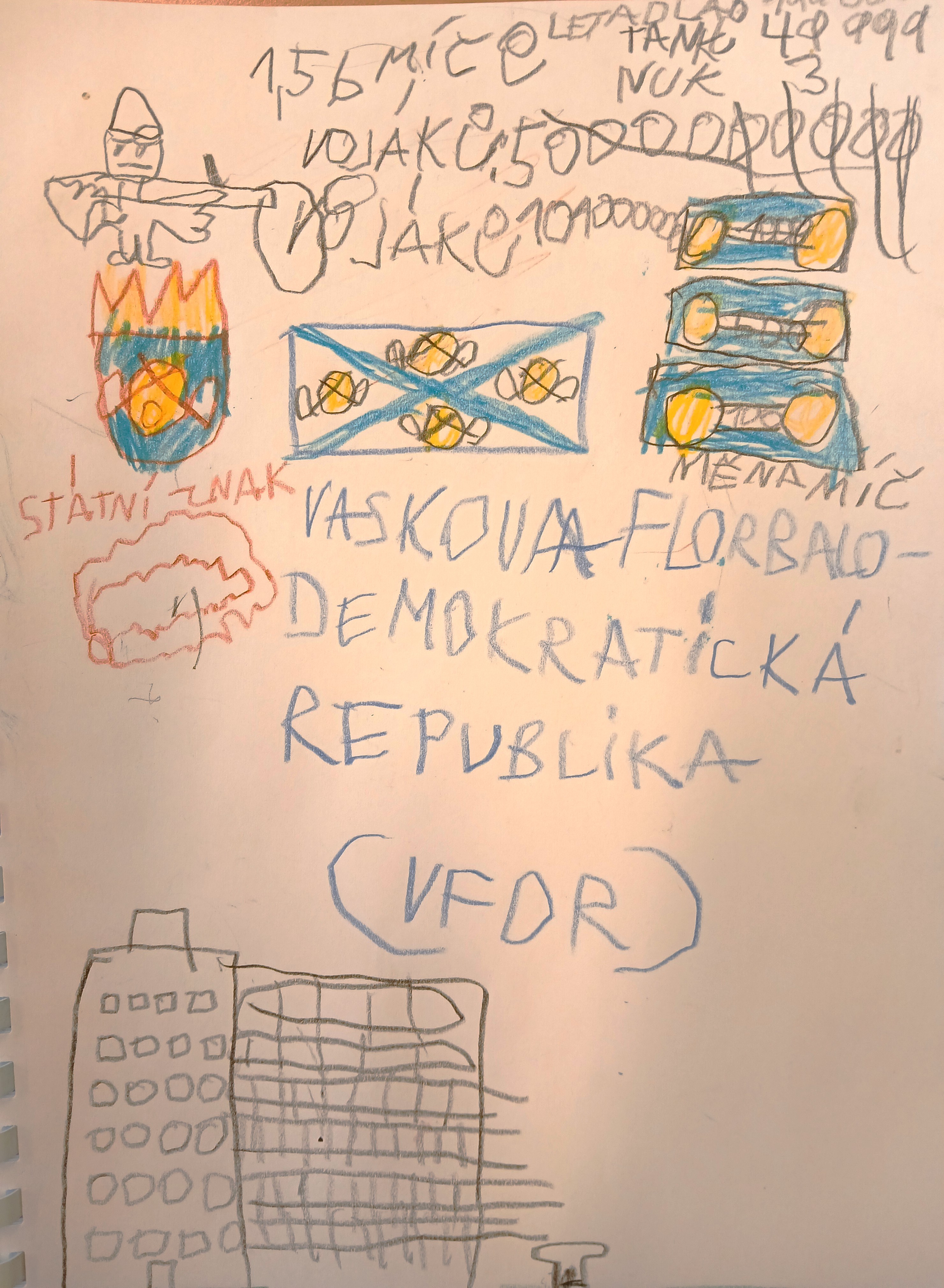 Půlroční projekt s dětmi 5 tříd. Každý si vytvořil sešit s monogramem, děti pak měli zkoumat své iniciály-nacházeli předměty,zvířata a další od začátečních písmen svého jména. V dalších hodinách dělali návrhy na svůj vysněný dům, svůj fiktivní stát a jeho vlajku, znak a měnu. (Mince pak i odlili do sádry a pozlatily sprayem.)Dále vymýšleli piktogram k olympijskému sportu, loutku svého hrdiny