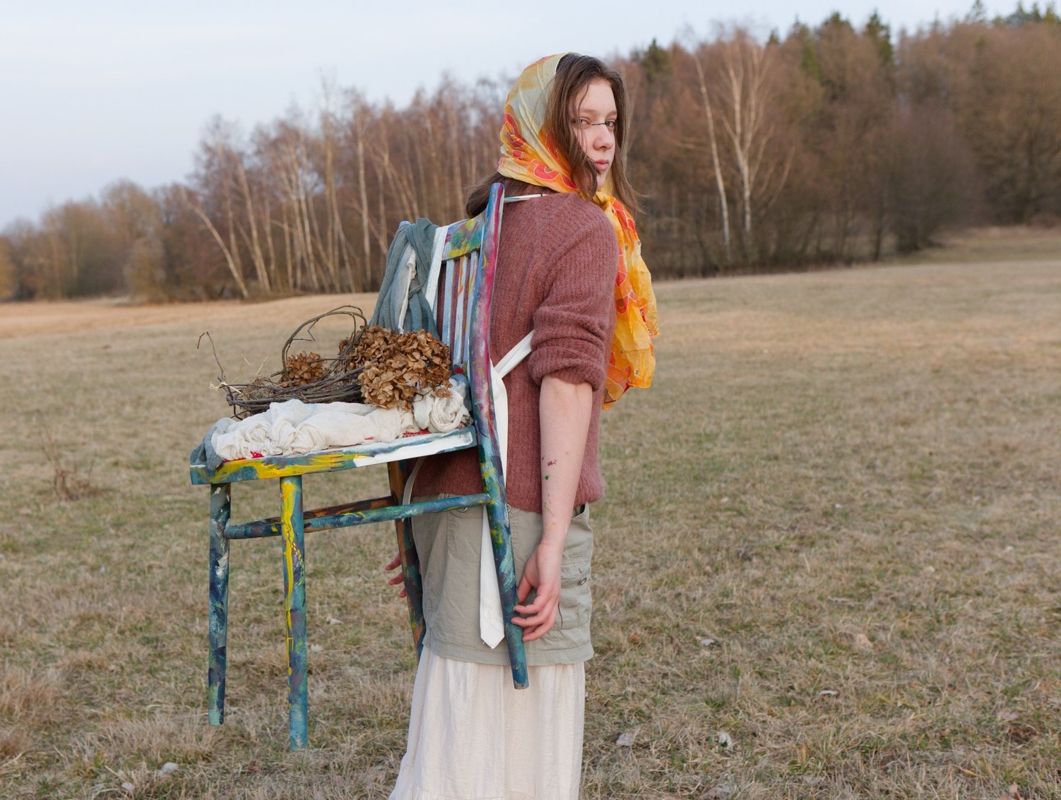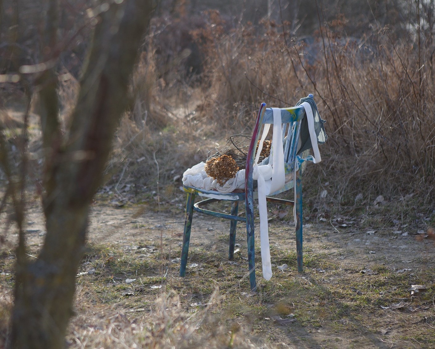 12 x fotografie cca A4, 4 x skica malá, 1 x portfolio 29,7 x 29,7, 1 židle - objekt