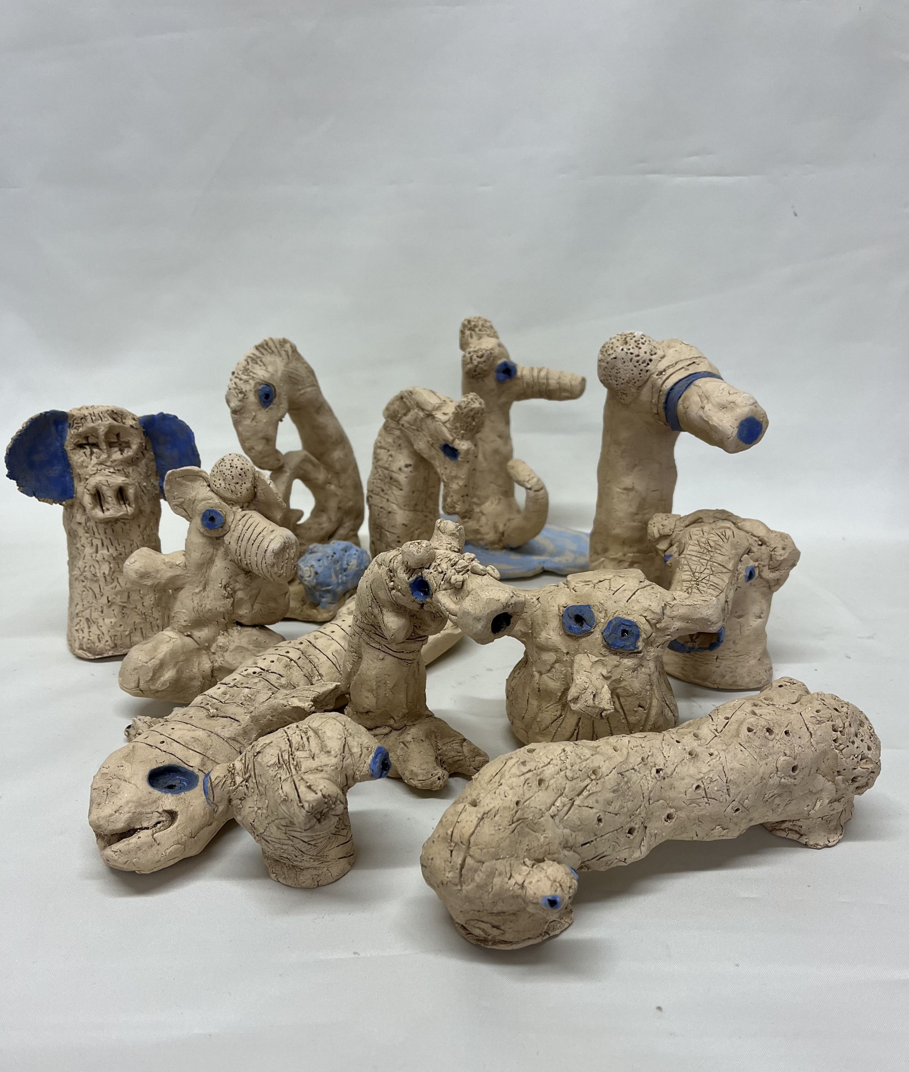 Z cesty ve Středomoří jsem si přivezla mořem vyplavené kořeny rostliny trsti rákosovité. Svými tvary mi připomínaly nejrůznější podivuhodná stvoření, a tak jsem byla zvědavá, co v nich objeví děti v keramickém a výtvarném kroužku, který vedu. Vznikly skutečně nevšední kresby, v nichž se naplno projevila dětská představivost a fantazie. Ukázalo se, že tento zdroj inspirace je téměř nevyčerpatelný.