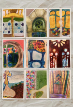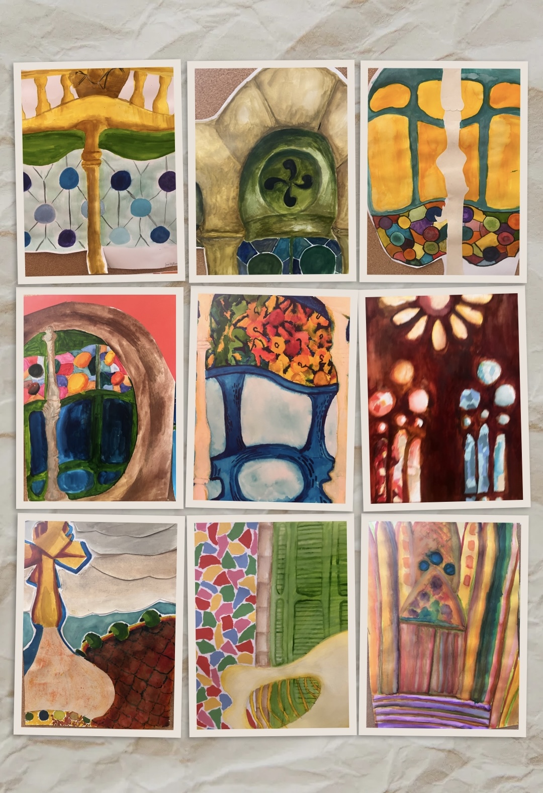 Vnímáme vlnité fasády a necháváme akvarelové barvy stékat po papíře. Tančíme štětci na našem společném parketu – velkoformátovém plátně. Odvracíme se od přímých linií.