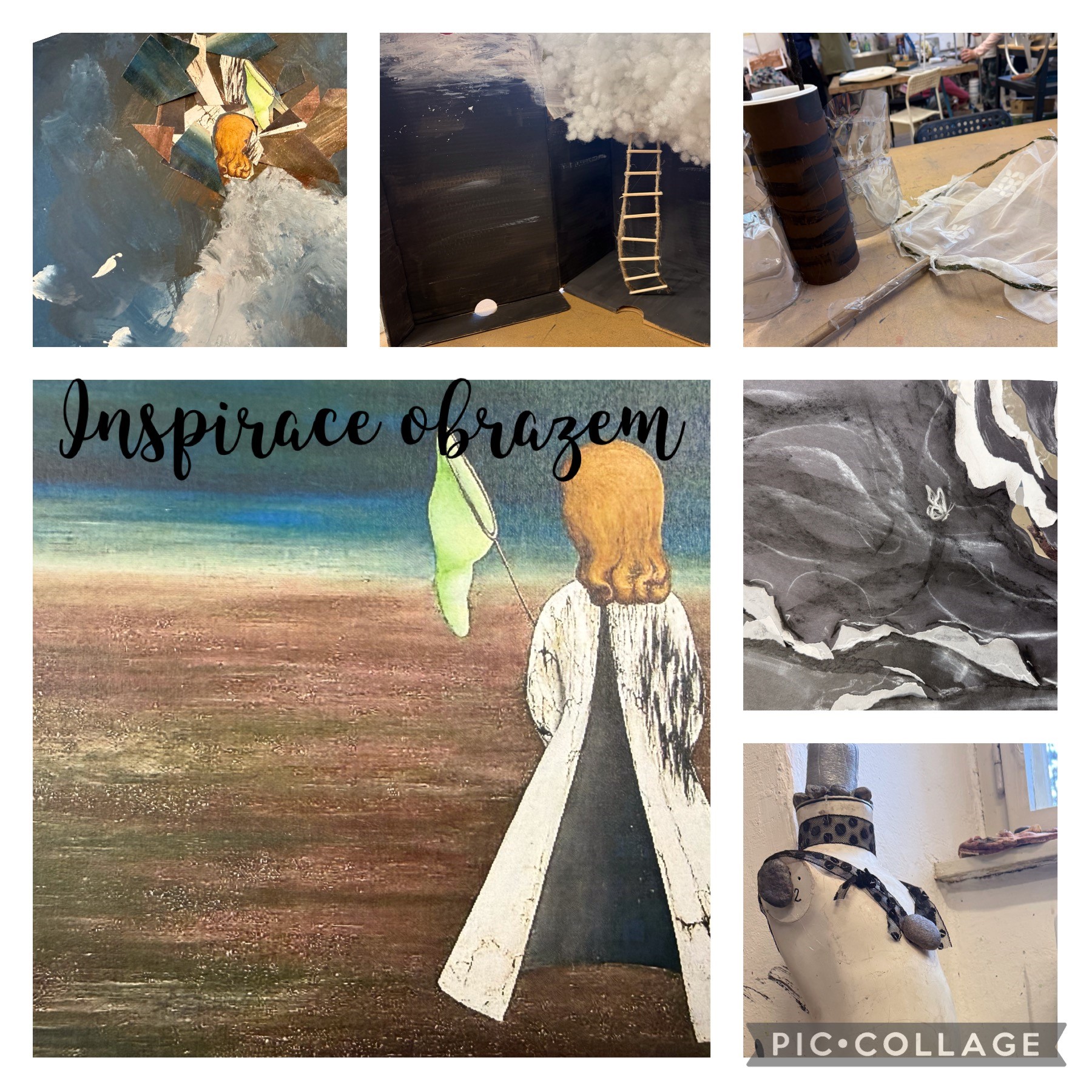 Oči jsou vstupem do těla a duše člověka. Co vidíme reálně a co ve svých snech. Začali jsme velkým formátem oka v suché křídě a rozvinuli jsme principy realistické malby a kresby krajiny, ve které žiji a vidím každý den. Formuje mě, ovlivňuje, ale když zavřu oči a usnu, jsem úplně někde jinde. Přes příběh a biografické dílo Toyen, jsme se ocitli v surrealismu a imaginativní tvorbě. Pracovali jsme na obrazech inspirovaných Toyen, na přetváření, na detailech na ztvárnění objektů, reliéfů a hlavním… více