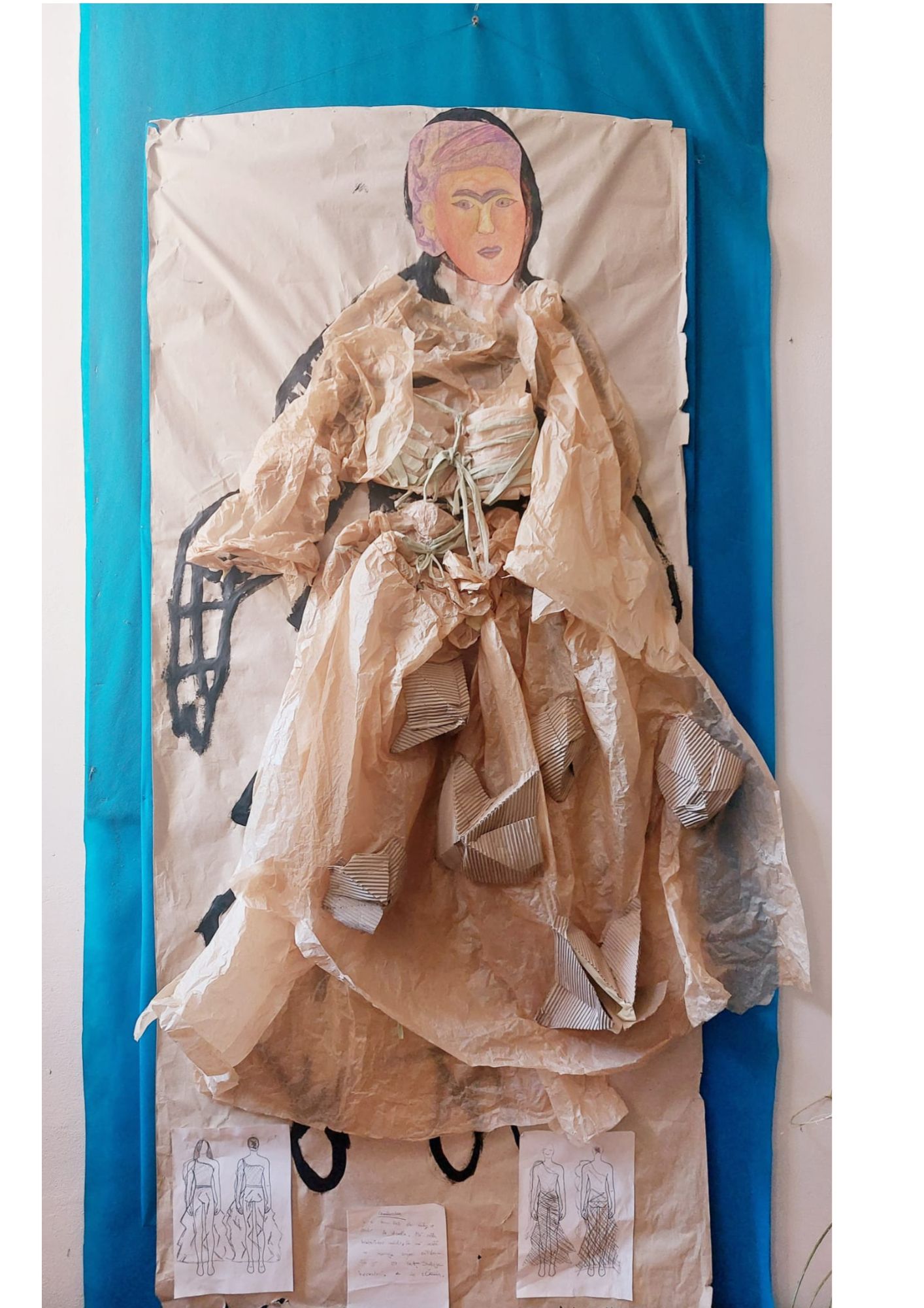 Nejprve si načrtli na papír, kde měli přetištěnou siluetu postavy, základní tvar kostýmu .