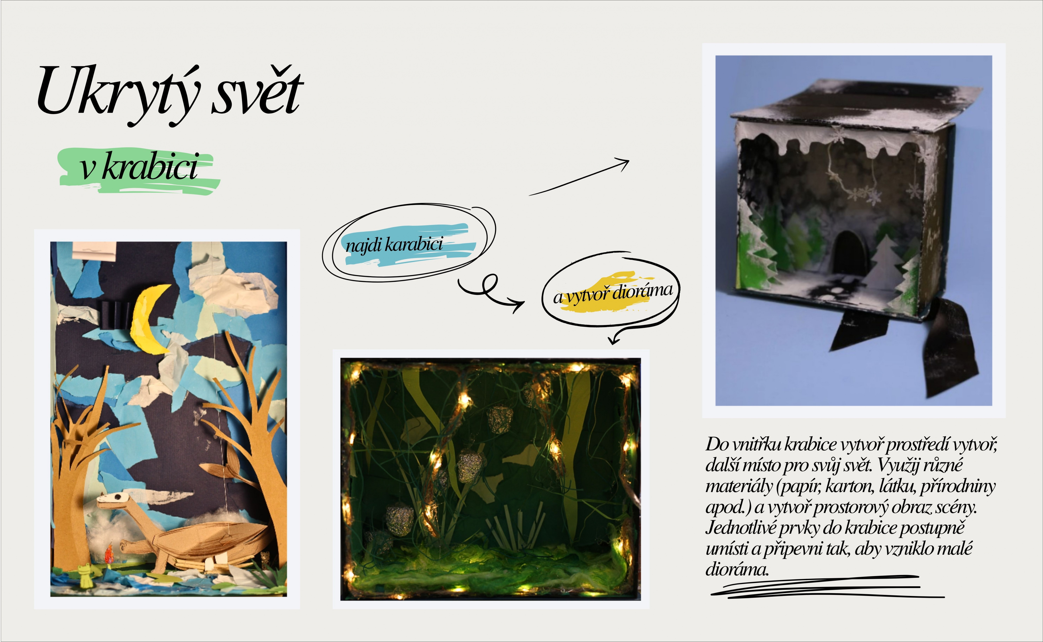 Projekt sleduje proměnu knihy od nalezeného fragmentu textu k osobnímu autorskému dílu a zkoumá vztah mezi čtením a tvorbou, ilustrací a objektem, příběhem a vizuální interpretací. Podporuje imaginaci, práci s vyprávěním i samostatné výtvarné rozhodování.