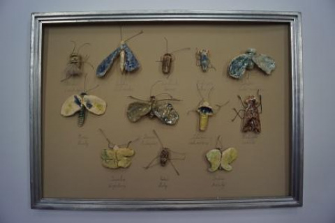 6 x závěsné obrazy (komb. tech. - keramika, rám), 7 x prostorový objekt (komb. tech.)