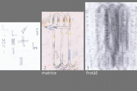 1x portfolio A4 2x návrh A4 6x matrice A4 8x frotáž čtverec z A3