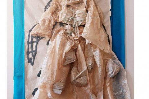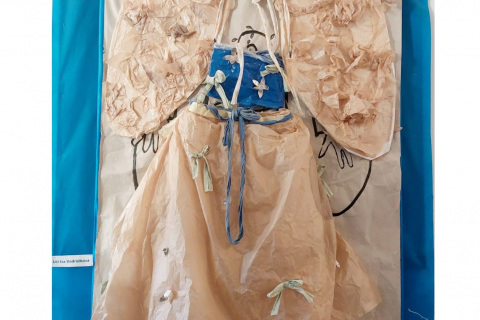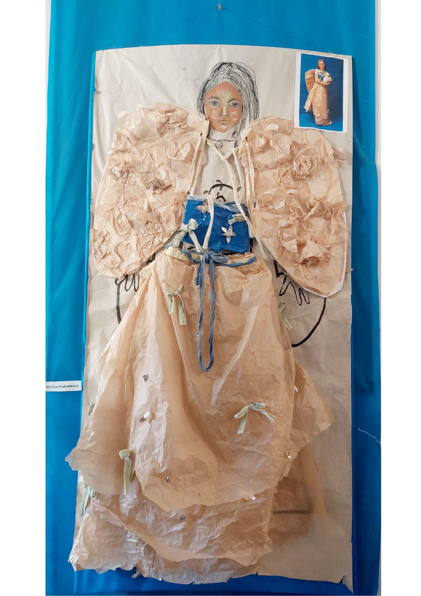 Podle tohoto definitivního návrhu pak vytvářeli kostým z tenkého balícího i kartonového papíru, s použitím drátů, igelitu, látky, dřevěných korálků, alobalu, lepících pásků a tavné postole.