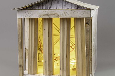1ks odkaz na video smyčku (you tube) obsahující formou fotosnímků záznam realizovaných světelných objektů a 2ks černého kartonu formátu B 70x100cm se zapaspartovanými grafikami čtvercového formátu jako doprovodné ilustrace vzniklé v rámci projektu