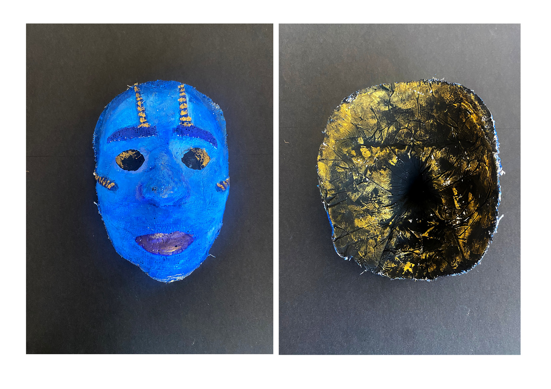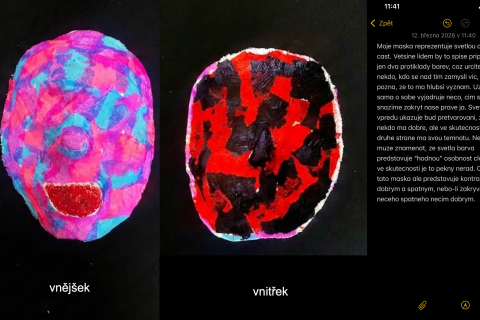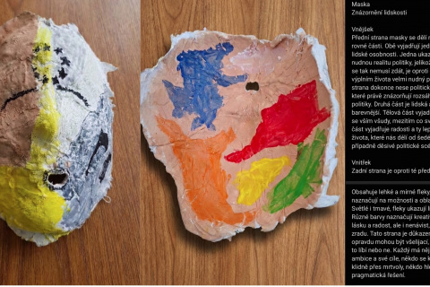 Projekt „Moje maska“ zkoumá hranici mezi vnějším projevem a vnitřním prožitkem skrze proces sádrového otisku tváře. Jedná se o poměrně běžné výtvarné zadání, které má svoje důležité místo ve výukách. V otázce hranic designu a umění je to však velmi nosné zadání. Maska nemusí být chápána jako rekvizita vázaná ke konkrétní tradici masopustu či karnevalu, ale jako univerzální archetyp – nástroj ochrany, prostředek spojení s duchovním světem nebo prostor pro vznik nového alter ega. Když maska postrádá pevnou kulturní dedikaci, tak se její design posouvá do roviny čistě uměleckého objektu, který si však stále uchovává svou původní účelovou formu „slupky“, jež překrývá lidskou tvář.
