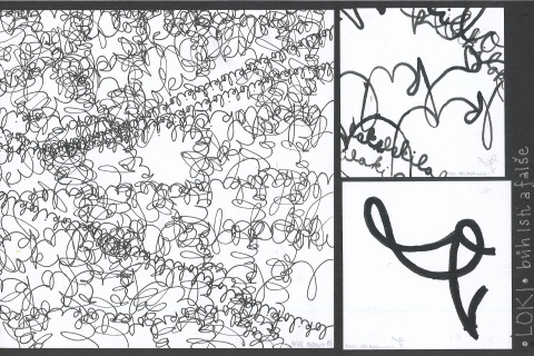 2. Vzývání, symbolické sžití s božstvem - grafický záznam jména – automatické psaní, zmnožení zápisu, práce s psaným písmem a jeho kompozicí na malé ploše,