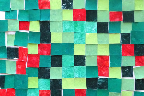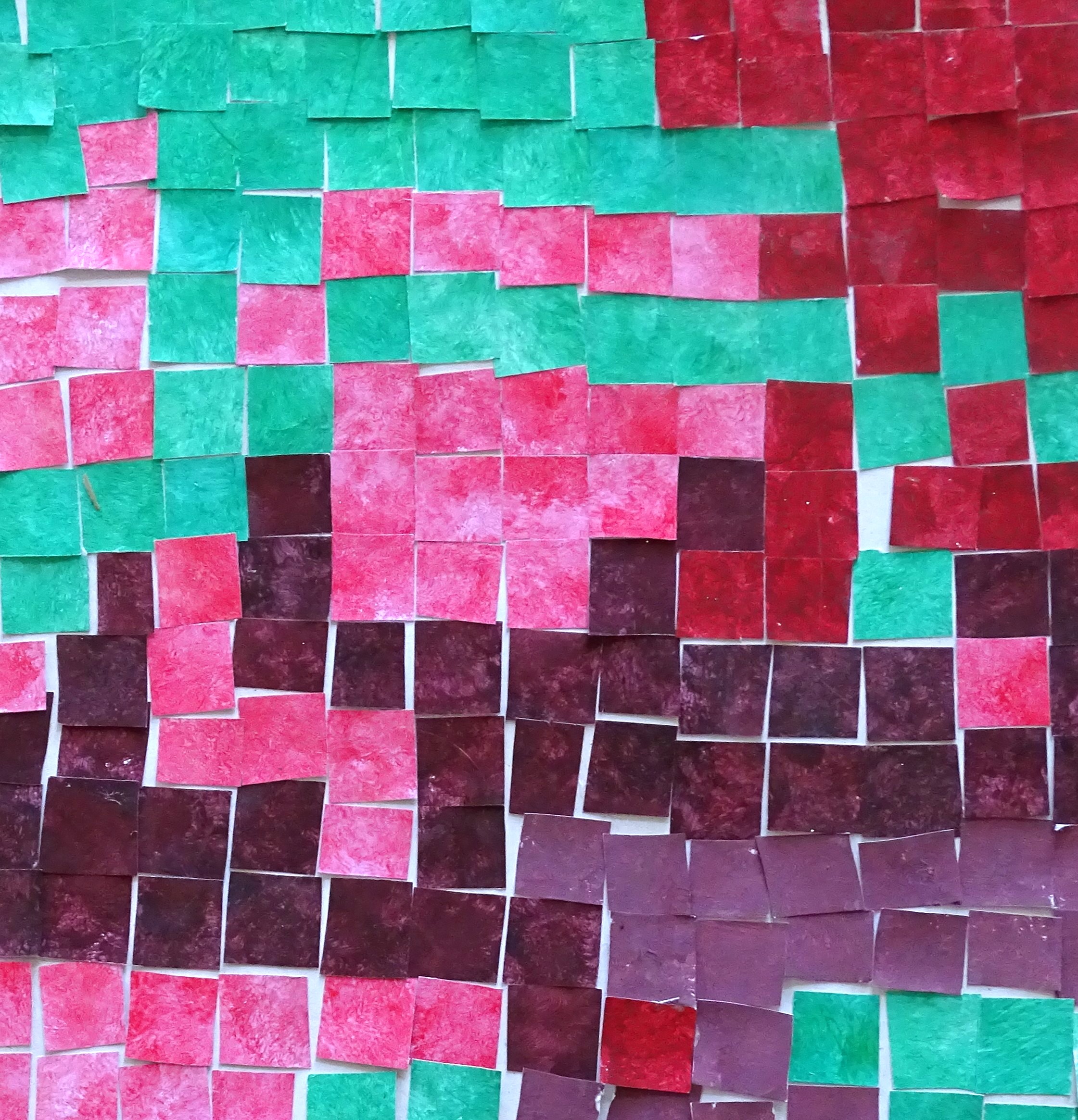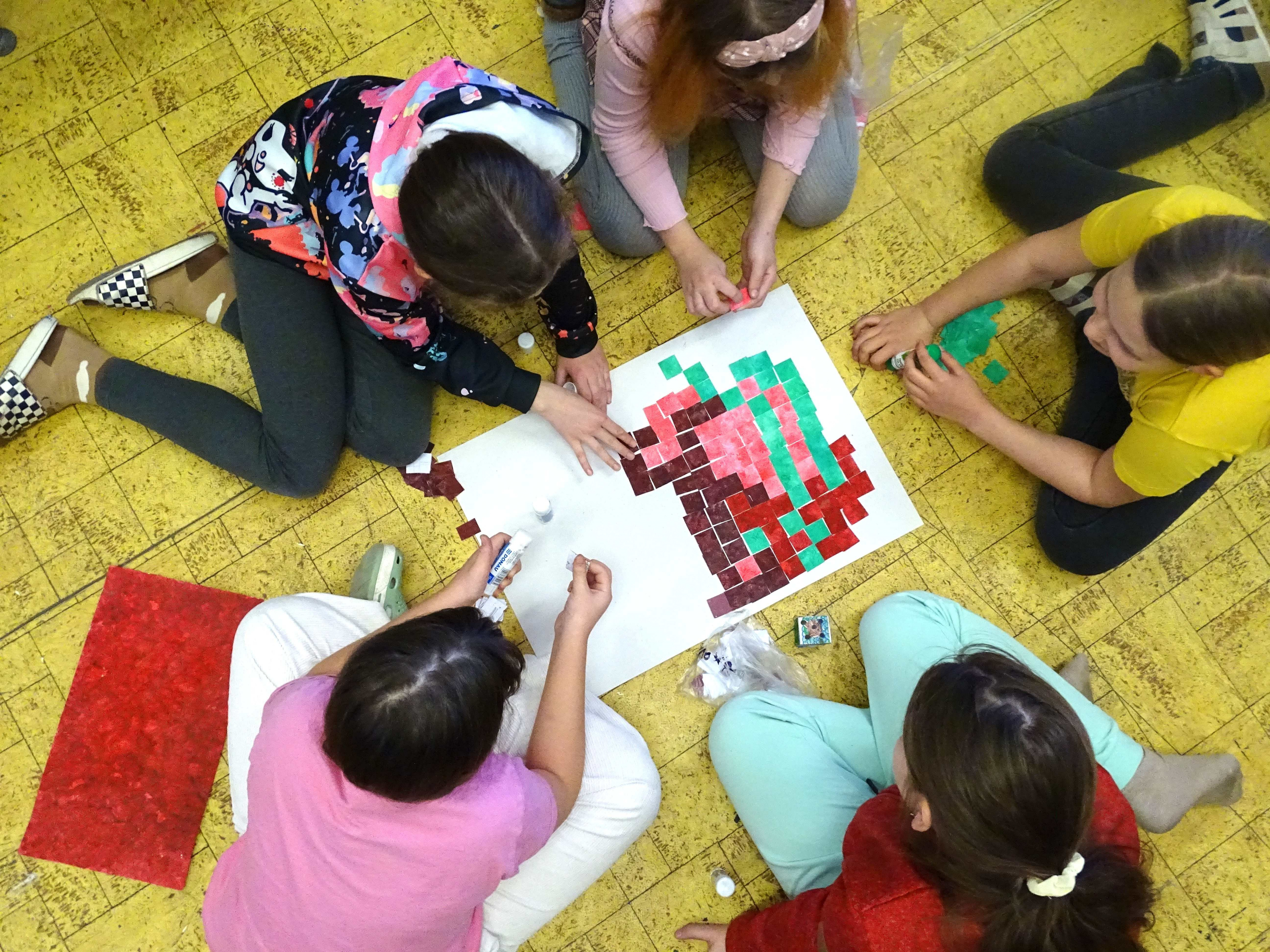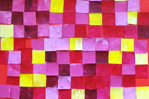 Žáci vychází z teorie barev. Spolu vyberou jednu barvu. Každý maluje na čtvrtku temperami jeden odstín této barvy (od nejsvětlejší po nejtmavší), ale jeden žák ze skupiny barvu "narušuje" a maluje barvou komplementární/kontrastní. Vystřihnou čtverce a házejí kostkou. Kolik hodí na kostce, tolik čtverců svého odstínu přidají do společné práce dle "piškvorkového schématu". Co je barva, která nemá žádný tvar? Žádné hranice? Stane se něco, když barvu vystřihneme?