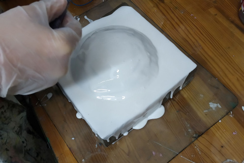Ráchel se pro svou absolventskou práci inspirovala kultovním designem obkladů stěn pražského metra, které navrhl architekt, designér a výtvarník Jaroslav Otruba. Zaujala ji hlavně kombinace konkávních a konvexních tvarů známých jako „prso/antiprso“. Cíl, ke kterému se studentka propracovává, by měla být kompozice kolorovaných sádrových odlitků -prs/antiprs, které by mohly fungovat jako skládačka - něco jako poskládej si svá Prsa/Antiprsa. Práce je zatím v procesu tvorby. Oceňuji, že si Ráchel vybrala tak náročný sochařský projekt, něco, co ještě nikdy nedělala, vstoupila do neprobádaných, pro ni nových technologií a postupů. Absolvovaly jsme mnoho konzultací se sochaři, bylo třeba nemálo materiálových a technologických zkoušek, studovaly jsme videa s postupy odlévání a práce se silikonem. Kromě modelování prsa a antiprsa, si Ráchel vyzkoušela vytváření silikonové a sádrové formy, odlévání jednotlivých sádrových odlitků a jejich patinování. Z důvodu technologické náročnosti se nám nejspíše nepodaří na přehlídce ukázat celou finální práci a tak budeme prezentovat celý unikátní proces tvorby prostřednictvím portfolia.
