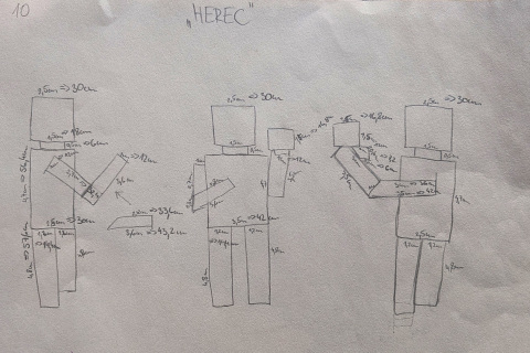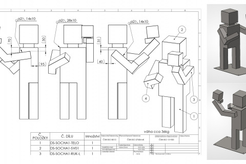Cesta od prvotní myšlenky k finálnímu projektu kopírovala profesionální designérský proces. Autorka nejprve pracovala na sérii skic, aby definovala jasné charakterové rysy a pohyby jednotlivých postav. Následovala tvorba zmenšených modelů z polystyrenu, které byly následně fotografovány a za pomoci grafických programů a umělé inteligence převedeny do precizních vizualizací v reálném prostředí. Aby bylo možné ověřit měřítko a působení, byla jedna ze soch vytvořena také ve velikosti 1:1. Celý postup vyvrcholil spoluprací s externím konstruktérem, který na základě autorčiných podkladů vypracoval technickou dokumentaci pro výrobu z plechu. V současné době je projekt kompletně připraven k realizaci a škola hledá cesty k jeho finálnímu zhmotnění. Ideální příležitost vidíme v navázání partnerství se střední či vyšší odbornou školou se zaměřením na strojírenství a kovovýrobu.