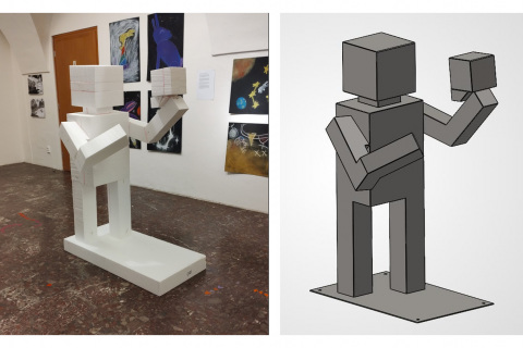 Nedávná rekonstrukce jedné z budov naší školy otevřela nový exteriérový prostor, který se stal inspirací pro vznik unikátní sochařské instalace. Autorkou celého konceptu je sedmnáctiletá žákyně Eliška Jüstelová, která se rozhodla toto místo oživit dílem reflektujícím samotnou podstatu uměleckého vzdělávání. Její návrh pracuje se čtveřicí postav, které reprezentují klíčové obory školy – hudebníka, tanečnici, výtvarníka a herce. Tyto figury nejsou statickými objekty, ale dynamicky využívají architekturu budovy a její zdi, čímž vytvářejí organické propojení mezi uměním a konkrétním prostorem školy.