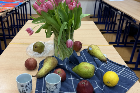 Během hodin výtvarné výchovy jsme pozorovali proces pomíjivosti na příkladu zátiší s živou lilií a hledali zobrazení jejího symbolu v dějinách umění. Vycházeli jsme z přednášky o zlatém věku malířství 17. století, představujícím vrchol baroka s dominujícím realismem, a hledali paralely se současným uměním, například při zachycení světla a momentů každodennosti. Důležitá byla i návštěva NGP a uvědomění si tvůrčího procesu, který vedle fyzického popisu díla přibližuje především jeho účinek na diváka, vytvoření vztahu a zprostředkování otázek současného umění. Zároveň můžeme připomenout založení školní galerie GYMVOD GALLERY s fotografickou výstavou dokumentující pobyt studenta v USA. Dalším projektem bylo vymalování stěny před školní jídelnou, kde studenti představili dílo Henriho Matisse a zhodnotili jej v navazující seminární práci myšlenkovou mapou, výzkumnou otázkou a popisem reakcí vrstevníků na vznik nového díla ve veřejném prostoru školy.