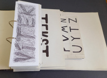 1x kniha, 2 kořeny rostliny, 1x portfolio, 4-5 keramických objektů, 1 sítotisk, 1 včelí ubrousek, 5 razítek písma, 4 malé doprovodné kresby