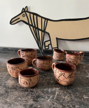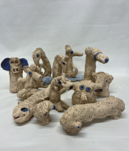 9 sošek porcelánových, 8 hliněných, kapa deska s monotypy