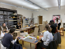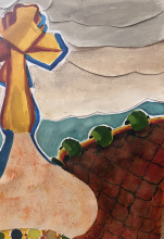 Vnímáme vlnité fasády a necháváme akvarelové barvy stékat po papíře. Tančíme štětci na našem společném parketu – velkoformátovém plátně. Odvracíme se od přímých linií.